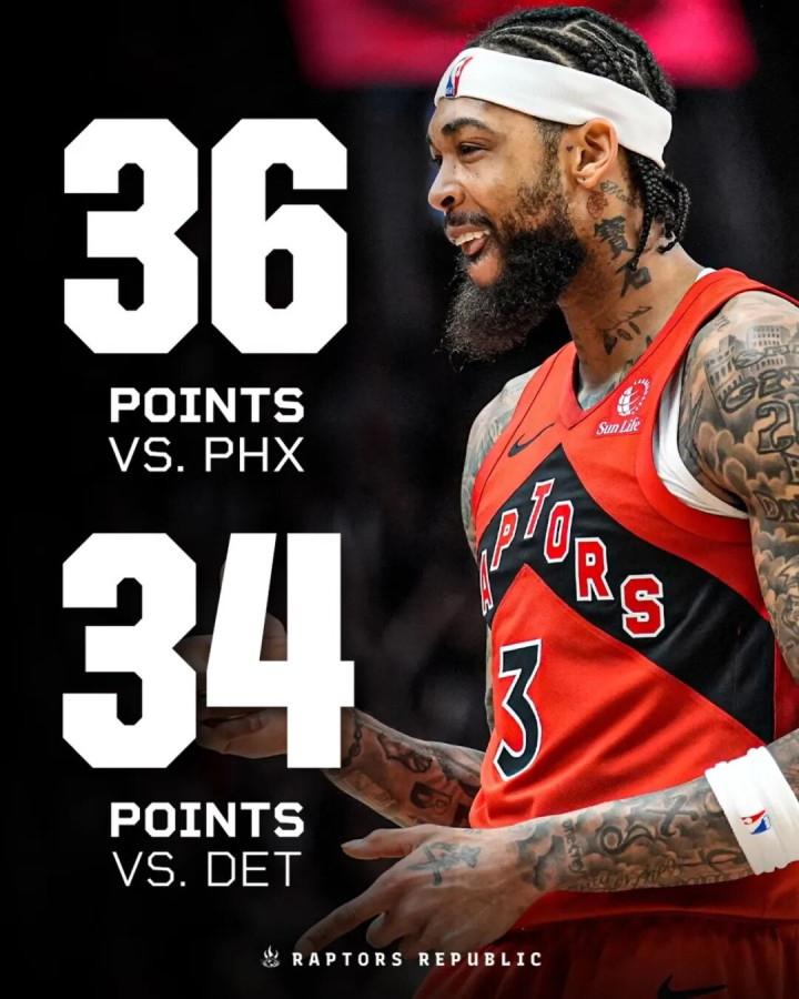 吞并两场比赛,英格拉姆分辨拿下36分和34分,关于好多超等得离婚可能不算什么,然而关于本赛季的英格拉姆照旧相比稀有的。 这只是是他加盟猛龙之后第二次吞并两场30+,其中36分照旧猛龙生存的第二高分(最高分是本赛季初的37分)。