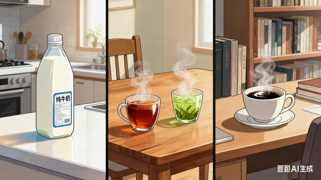 稳糖食品保举 这么换更健康 ▼ 避让“升糖刺客”后,用以下食品替代,既能昂扬口腹之欲,又能稳住血糖。 饮品类:拒却“隐形糖”,选无添加 保举:纯牛奶、无糖茶(绿茶/红茶)、黑咖啡。 情理: 纯牛奶配料表只消“生牛乳”或“生羊乳”,无白砂糖、无果葡糖浆、无增稠剂。一杯(250ml)纯牛奶含自然乳糖约12g,GI≈30~37,属低GI食品;因含卵白质和脂肪,GL≈3~4,餐后血糖波动小,相宜控糖东谈主群[3,4,6]。 无糖茶零热量、零碳水,还富含茶多酚,有助改善胰岛素明锐性[9]。逐日饮茶≥4杯,2型糖尿病风险裁汰17%[10]。 黑咖啡险些不含碳水,适量饮用(每天≤3杯),2型糖尿病风险裁汰25~30%[11]。